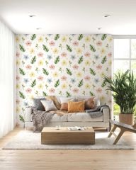 Renkli Çiçekler ve Tropikal Yapraklar Duvar Kağıdı