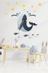 Sevimli Balina ve Yıldızlar Çocuk Odası Duvar Sticker